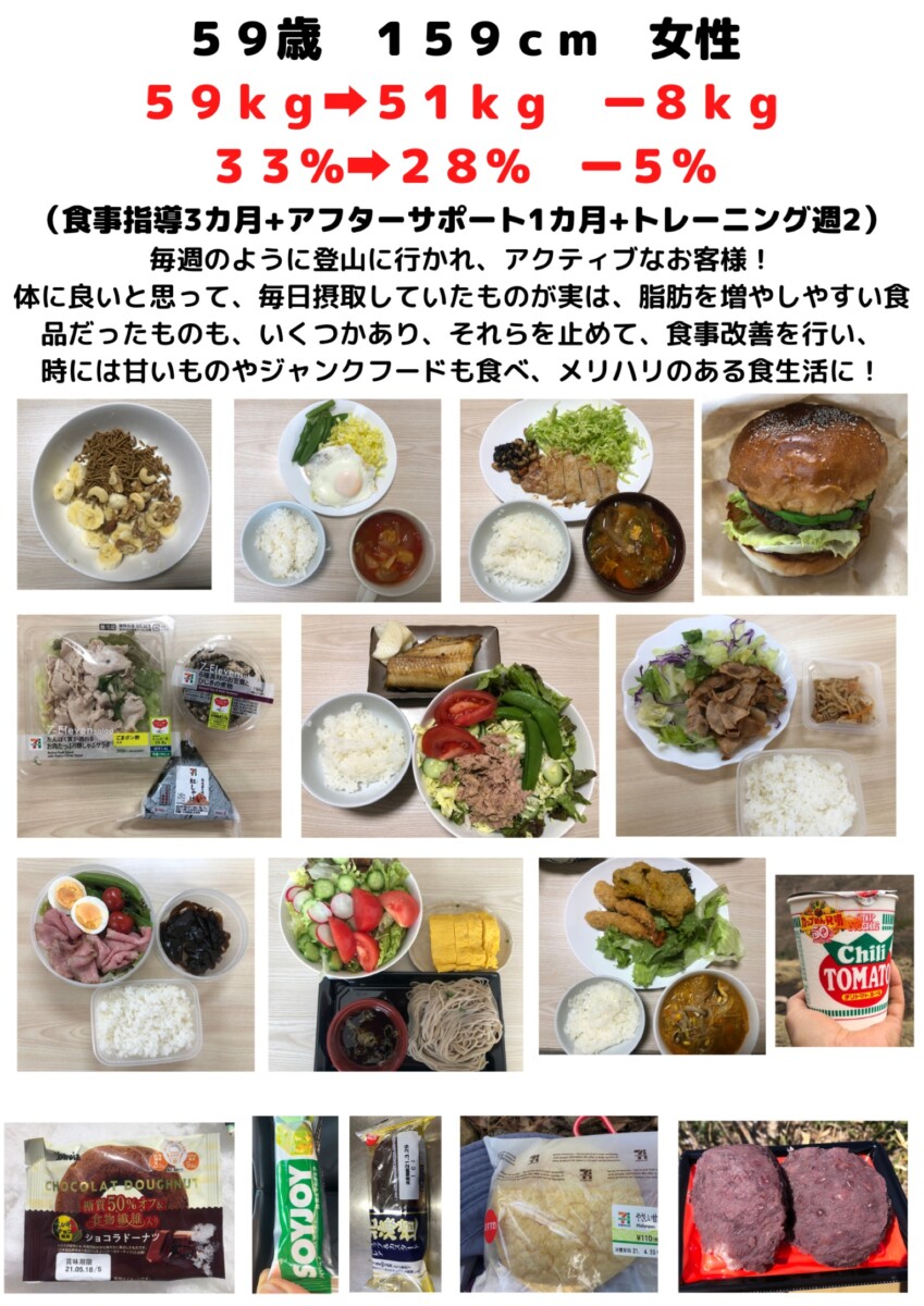 ✨3ヶ月でー8kgの59歳の女性のお客様の食事例✨